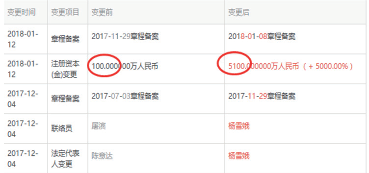 注册资本增加了5000万,百荣信息的股东变更前后均是同一个人,5000万元注册资本的合理来源只能有一个,那就是公司唯一的股东杨雪娥,这就与浙江欣吉诺2017年战略入股的说法有冲突了。