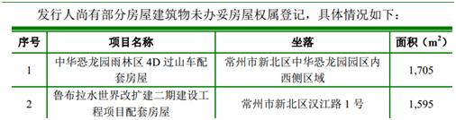2015年9月披露的公开转让说明书显示,恐龙园有9处房屋建筑物有产权证,同时还有4处房屋建筑物尚未办妥房屋权属登记,这里面包括面积达到4726平方米的鲁布拉水世界改扩建项目(以下简称:鲁布拉一期项目),公开转让说明书提到这4处房屋建筑物的权属证书正在办理中:
